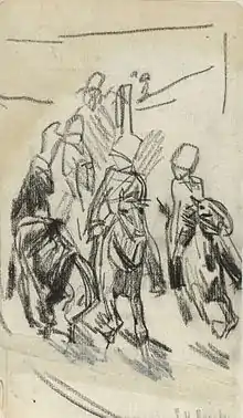 - That painting with that man - that drunken man - was first a soup-distribution [on the streets], which I had seen, and for which I also made those studies of which you speak. Also failed; simply due to lack of perseverance. I have made another drawing of it, which V. Wisselingh found quite good and he afterwards sold to an American, and he does not know where it has gone. (translation from the original Dutch, Fons Heijnsbroek)