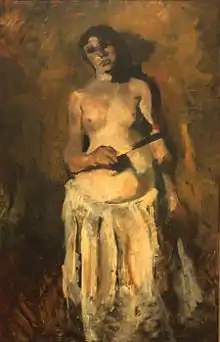 Breitner, c. 1892: 'Vrouwelijk Naakt / Female Nude', oil on canvas; - quote of Breitner, undated: 'De zogenaamde burgerij levert geen stof voor mijn kunst. Het karakter [van de modellen] dáár is te flauw en geesteloos.. .Mij rest dus geen andere keuze [dan volksvrouwen]'