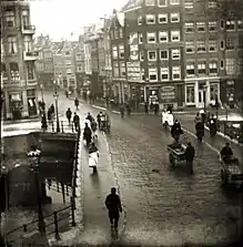 photo by Breitner, c. 1889-1894: view from above on the bridge of Paleisstraat, Amsterdam (between Singel canal and the Spuistraat