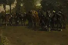 Breitner, 1885: 'Rustende cavalerie / Resting Cavalry', oil-painting on canvas