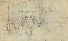 Breitner, 1885: 'studie voor 'De Gele Rijders' / study for 'The Yellow Riders', black crayon on paper