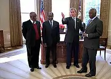 - We praise President Bush for his strong record on civil rights enforcement, and for becoming the first president ever to ban racial profiling by the federal government.