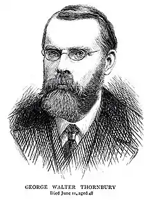 George Walter Thornbury (13 November 1828 – June 11 1876) was an English author. He was the son of a London solicitor. A journalist by profession, he also wrote verse, novels, art criticism and popular historical and topographical sketches. He began his career in 1845 with contributions to Bristol Journal and wrote later mainly for the Athenaeum. He is said to have died in a lunatic asylum.