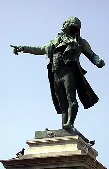 Georges Jacques Danton (October 26 1759 – April 5 1794) was a French lawyer and a leading figure in the French Revolution. He became a deputy to the Paris Commune, presided in the Cordeliers district, and visited the Jacobin club. In August 1792 he became French Minister of Justice and was responsible for inciting the September Massacres. In Spring 1793 he supported the foundation of a Revolutionary Tribunal and became the first president of the Committee of Public Safety. After the Insurrection of 31 May - 2 June 1793 he changed his mind on the use of force and lost his seat in the committee; Danton and Robespierre became rivals. In early October, 1793, he left politics but was urged to return to Paris to plead, as a moderate, for an end to the Terror. Danton's continual criticism of the Committee of Public Safety provoked further counter-attacks and he was guillotined by the advocates of revolutionary terror after accusations of conspiracy, venality and leniency toward the enemies of the Revolution.