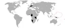 The German colonial empire constituted the overseas colonies, dependencies and territories of Imperial Germany. Unified in the early 1870s, the chancellor of this time period was Otto von Bismarck. Germany built the third-largest colonial empire at the time, after the British and French. The German Colonial Empire encompassed parts of several African countries, including parts of present-day Burundi, Rwanda, Tanzania, Namibia, Cameroon, Gabon, Congo, Central African Republic, Chad, Nigeria, Togo, Ghana, New Guinea, and numerous other West Pacific / Micronesian islands. It was forced to give up its colonies to the Allied powers after World War I.