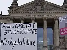 School strike for climate, also known in various regions as Fridays for Future, Youth for Climate or Youth Strike 4 Climate, is a growing international movement of pupils and students who, instead of attending classes, are taking part in demonstrations to demand action to prevent further global warming and climate change. ~Wikipedia
