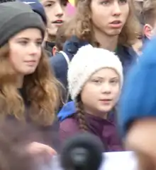 Greta Thunberg (born 3 January 2003) is a Swedish climate activist. In August 2018, she initiated the School strike for climate movement and in early-December the same year she spoke at the United Nations Climate Change conference to denounce world leaders for their inaction.