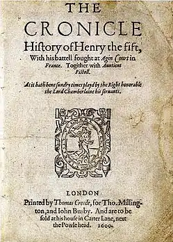 Henry V is a play by William Shakespeare based on the life of King Henry V of England. It deals with the events immediately before and after the Battle of Agincourt during the Hundred Years' War. The play is thought to date from the first few months of 1599 and is the final part of a tetralogy, preceded by Richard II, Henry IV, Part I and Henry IV, Part II.