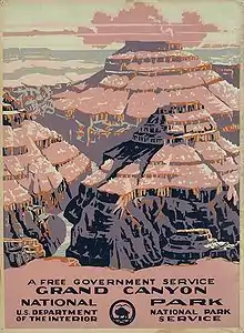 Grand Canyon poster (1938) - The wonders of the Grand Canyon cannot be adequately represented in symbols of speech, nor by speech itself. The resources of the graphic art are taxed beyond their powers in attempting to portray its features. Language and illustration combined must fail. - John Wesley Powell. - Norman Rockwell.