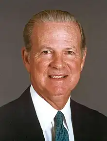 James Addison Baker, III (born April 28, 1930) worked in President Ronald Reagan's administration, first as Chief of Staff from 1981 to 1985, then as Secretary of the Treasury from 1985 to 1988. After running George H.W. Bush's successful presidential campaign in 1988, Baker was appointed Secretary of State by President Bush in 1989. The James A. Baker III Institute for Public Policy at Rice University in Houston, Texas is named after him. In 2006, he was named the Republican co-chair of the newly-created Iraq Study Group (Lee Hamilton was named the Democratic co-chair).