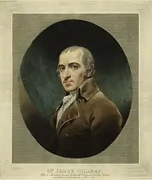 James Gillray (13 August 1756 – June 1815) was a British caricaturist and printmaker famous for his etched political and social satires, mainly published between 1792 and 1810. Many of his works are held at the National Portrait Gallery in London.
