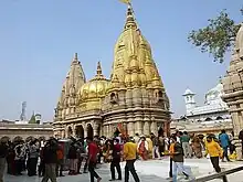 Kashi Vishwanath Temple is one of the most famous Hindu temples dedicated to Lord Shiva. It is located in Varanasi, Uttar Pradesh, India. The temple stands on the western bank of the holy river Ganges, and is one of the twelve Jyotirlingas, the holiest of Shiva temples. The main deity is known by the name Vishvanatha or Vishveshvara meaning Ruler of The Universe. Varanasi city is also called Kashi, and hence the temple is popularly called Kashi Vishwanath Temple. The temple has been referred to in Hindu scriptures for a very long time as a central part of worship in the Shaiva philosophy. It has been destroyed and re-constructed a number of times in history. The last structure was demolished by Aurangzeb, the sixth Mughal emperor who constructed the Gyanvapi Mosque on its site. The current structure was built on an adjacent site by the Maratha ruler, Ahilya Bai Holkar of Indore in 1780.