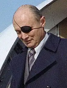 Moshe Dayan (20 May 1915 – 16 October 1981) was an Israeli military leader and politician. As commander of the Jerusalem front in the 1948 Arab–Israeli War, Chief of Staff of the Israel Defense Forces (1953–1958) during the 1956 Suez Crisis, but mainly as Defense Minister during the Six-Day War in 1967, he became a worldwide fighting symbol of the new state of Israel. In the 1930s, Dayan joined the Haganah, the pre-state Jewish defense force of Mandatory Palestine. He served in the Special Night Squads under Orde Charles Wingate during the Arab revolt in Palestine and later lost an eye in a raid on Vichy forces in Lebanon during World War II.