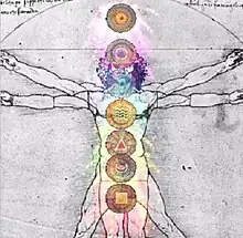 - The seven principal chakras are situated along the spinal cord from the base to the cranium chamber. Besides seven chakras exist below the spine. They are seats of instinctive consciousness, the origin of jealousy, hatred, envy, guilt, sorrow etc. They constitute the lower or hellish world, called Naraka or pâtâla. Thus, there are 14 major chakras in all. The seven upper chakras are: 1) mûlâdhâra (base of spine): memory, time and space; 2) svâdhish†hâna (below navel): reason; 3) manipura (solar plexus):will power, 4) anahata (heart center): direct cognition; 5) vishudha (throat): divine love; 6) ajna (third eye): divine sight; 7)sahasrara (crown of head): illumination, godliness. The seven lower chakras are 1)atala (hips):fear and lust; 2)vitala (thighs): raging anger; 3)sutala (knees): retaliatory jealousy; 4) talatala (calves): prolonged mental confusion; 5)rasatala (ankles): selfishness; 6)'mahatala' (feet): absence of conscience; 7) patala (located in the soles of the feet): murder and [[malice.
