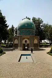 Nishapur or Neyshābūr, also Romanized as Nīshāpūr, Nīshābūr, and Neyshābūr from Middle Persian: New-Shabuhr, meaning "New City of Shapur", "Fair Shapur", or "Perfect built of Shapur"), is a city in the w:Razavi Khorasan Province, capital of the Nishapur County and former capital of Khorasan, in northeastern Iran, situated in a fertile plain at the foot of the Mount Binalud. It had an estimated population of 239,185 as of 2011 and its county 433,105. Nearby are the turquoise mines that supplied the world with turquoise for at least two millennia.