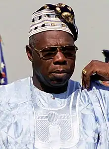 Chief Olusegun Matthew Okikiola Aremu Obasanjo, GCFR, (born 5 March 1937) is a Nigerian political and military leader who served as Nigeria's head of state from 1976 to 1979 and later as its president from 1999 to 2007. Ideologically a Nigerian nationalist, he was a member of the Peoples Democratic Party (PDP) from 1999 to 2015 and again from 2018 onward.