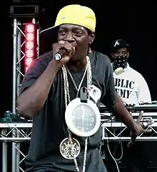 Public Enemy is an American hip hop group consisting of Chuck D, Flavor Flav, Professor Griff, Khari Wynn, DJ Lord, and the S1W group. Formed on Long Island, New York in 1982, they are known for their politically charged music and criticism of the American media, with an active interest in the frustrations and concerns of the African American community. They remain one of the most critically acclaimed bands in history.