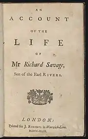 Title page of Life of Mr Richard Savage