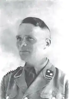 Rudolf Franz Ferdinand Höß (in English commonly Hoess or Höss; November 25, 1901 – April 16, 1947) was a German SS officer during the Nazi era who, after the defeat of Nazi Germany, was convicted for war crimes. Höss was the longest-serving commandant of Auschwitz concentration and extermination camp (from 4 May 1940 to November 1943, and again from 8 May 1944 to 18 January 1945). He tested and implemented means to accelerate Hitler's order to systematically exterminate the Jewish population of Nazi-occupied Europe, known as the Final Solution. On the initiative of one of his subordinates, Karl Fritzsch, Höss introduced the pesticide Zyklon B to be used in gas chambers, where more than a million people were killed.