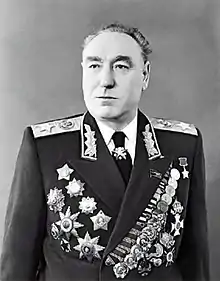 Sergey Semyonovich Biryuzov (August 21, 1904 – October 19, 1964) was a Marshal of the Soviet Union and Chief of the General Staff. On March 11, 1955, Biryuzov was given the rank of Marshal of the Soviet Union. Between April 1955 and April 1962, Biriuzov was the Commander in Chief of the National Air Defense Force. After this, he was made Commander in Chief of the Strategic Missile Force, and in 1963, he was made the Chief of the General Staff. On October 19, 1964, Biriuzov was killed in a plane crash on the mount Avala near Belgrade. The urn containing his ashes is buried in the Kremlin.