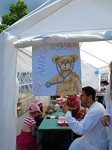Teddy bear hospital (TBH) is an international project, whose aim is to reduce "childhood anxiety about medical environments, procedures and medical professionals". TBH initiatives are run at approximately 20 medical schools in the UK, 8 medical schools in Australia, 2 medical schools in Ireland (including University of Galway and University of Limerick) and one medical school in Israel