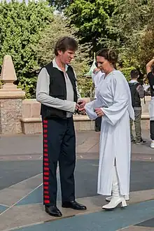 - Han: That's two you owe me, junior. [turns to Princess Leia] Well, your worship, looks like you've managed to keep me around for a little while longer.