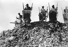 - And how they then storm and scramble, looking for fish heads, bones, the waste of vegetables. And how one expiring person is being killed in the scuffle. […] (The inquiring cameramen might continue filming and show, how the Bessarabian peasant wives brought from freedom rush with the same intention to the trash already searched through by the expiring persons.)