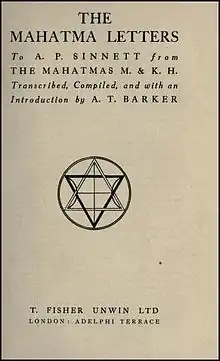 The Mahatma Letters to A. P. Sinnett is a collection of letters published as a book in 1923. They were written between 1880 and 1884 by the Masters Koot Hoomi and Morya to A. P. Sinnett. They are important to students of Theosophy due to their discussions on the cosmos and spiritual hierarchy.