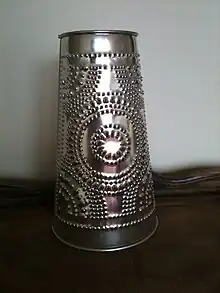 Many colonists decorated their homes with objects made out of punched tin. Sometimes they had punched-tin lanterns or candle holders. They also hung punched-tin pictures on their wall. - Terry Allan Hicks