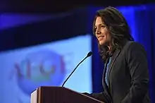 Tulsi Gabbard (/ˈtʌlsi ˈɡæbərd/; born April 12, 1981) is an American former politician and United States Army Reserve officer who served as the U.S. representative for Hawaii's 2nd congressional district from 2013 to 2021. Elected in 2012, she was the first Hindu member of Congress and also the first Samoan-American voting member of Congress. In early February 2019 she announced her candidacy for the Democratic nomination in the 2020 United States presidential election.