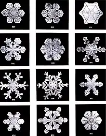 - The interest of research workers has frequently been focused on the phenomenon of regularly shaped crystals suddenly forming from a liquid, e.g. a supersaturated salt solution. According to the atomic theory the forming force in this process is to a certain extent the symmetry characteristic of the solution to Schrödinger's wave equation, and to that extent crystallization is explained by the atomic theory. Nevertheless this process retains a statistical and — one might almost say — historical element which cannot be further reduced: even when the state of the liquid is completely known before crystallization, the shape of the crystal is not determined by the laws of quantum mechanics. The formation of regular shapes is just far more probable than that of a shapeless lump. But the ultimate shape owes its genesis partly to an element of chance which in principle cannot be analysed further.