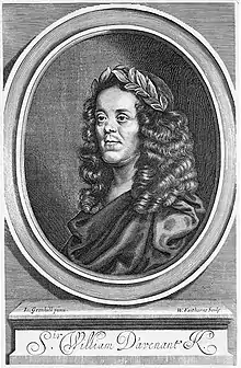 Sir William Davenant (28 February 1606–7 April 1668), also spelled D'Avenant, was an English poet and playwright. Along with Thomas Killigrew, Davenant was one of the rare figures in English Renaissance theatre whose career spanned both the Caroline and Restoration eras, and who was active both before and after the English Civil War and the Interregnum.