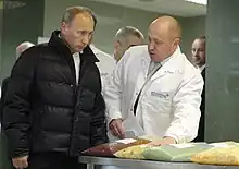 Yevgeny Viktorovich Prigozhin (Alternatively: Yevgeniy Vicktorovich Prigozhin, Russian: Евгений Викторович Пригожин; 1 June 1961 – 23 August 2023) was a Russian oligarch and former close confidant of Russian president Vladimir Putin. Prigozhin was nicknamed "Putin's chef" because his restaurants and catering businesses hosted dinners which Putin attended with foreign dignitaries.