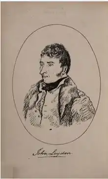 - "Leyden, John," in A Short Biographical Dictionary of English Literature, by John William Cousin, London: J. M. Dent & Sons (1910)
