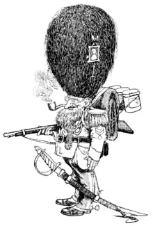 'We were 2,352 strong, including the gallant 53rd, of which I was a member, a battery of artillery, a camel corps, two squadrons of the smartest cavalry that ever chased a rabbit across the Hackney Marshes, and a battalion of infantry, so well trained that there was not one of the rank and file who could not play quite delightfully on the piano; while the officers were unexcelled at conjuring tricks, with which they used to amuse the soldiers seated round the camp-fires of an evening. We were ably generalled by that best of all officers. Sir Francis Melville Glowmutton, whose fame in after years very nearly earned for him the honour of being mentioned in a popular Encyclopædia.