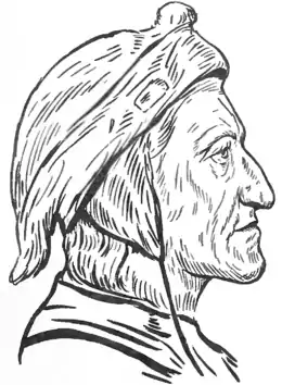 DANTE, ALIGHIERI (dän'tä ä-lē-gē-ā'rē), the greatest of Italian poets; born in Florence about the end of May, 1265, of a family belonging to the lower nobility. His education was confided to the learned Brunetto Latini. He is said also to have studied in various seats of learning. He seems to have been quite a boy, no more than 9 years of age, when he first saw Beatrice Portinari, and the love she awakened in him he has described in that record of his early years, the "New Life," as well as in his later great work, the "Divine Comedy." Their lives were spent far apart, Beatrice marrying a noble Florentine, Simone Bardi, in 1287, and dying three years afterward; while the year following Dante married Gemma dei Donati, by whom he had seven children.