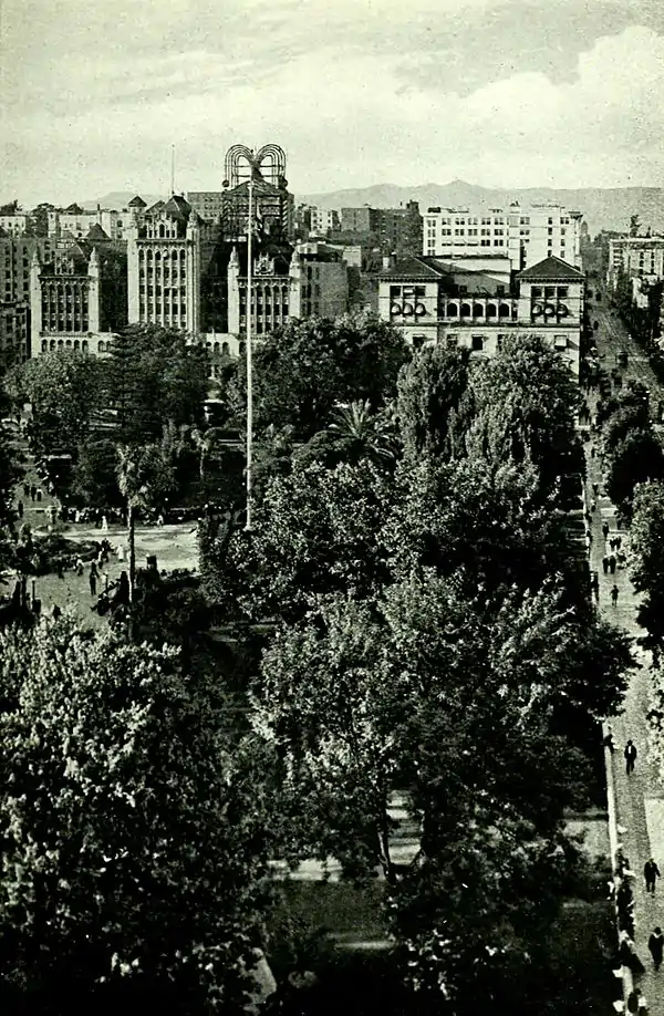 LOS ANGELES, a city of California, the county-seat of Los Angeles co. It is 475 miles S. E. of San Francisco. It is situated on the Los Angeles river, and the Southern Pacific, Atchison, Topeka and Santa Fe, the San Pedro, Los Angeles and Salt Lake, and the Southern Pacific railways. The total area is about 300 square miles. Los Angeles is noted for the healthfulness of its climate and for the beauty of its surroundings. In the vicinity are many well-known pleasure resorts which are easily accessible from the city. It has a magnificent harbor and a system of docks which were constructed at a cost of over $10,000,000. There are many public and private institutions. These include the State Normal School, the University of Southern California, the Occidental College and St. Vincent's College. Among the notable public buildings are the Bible Institute, State Normal College, city hall, court house, hall of records, auditorium, Blanchard Art building, and a Roman Catholic cathedral. The city has a magnificent system of parks, and there are public libraries, hospitals, and a park area which covers nearly 5,000 acres. Although Los Angeles is notable as a resident city, it has important business interests. There are over 25 banks with annual clearings of over $2,000,000,000. It is in the center of an important fruit-growing region and prior to the prohibition amendment had extensive wine-making industries. The chief exports are oranges and lemons, live stock and oils. The city is also in the center of a mining region of southern California and Arizona. There are large petroleum refineries. Other industries include foundries, machine shops, meat-packing plants, publishing houses, etc. The total value of manufactured products is over $200,000,000 annually.