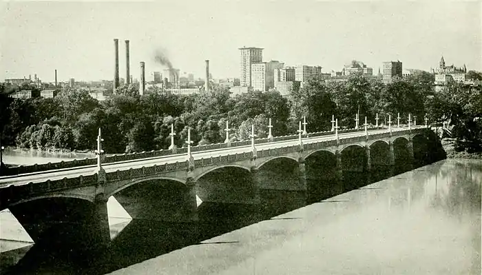 | RICHMOND, CAPITAL OF VIRGINIA, SHOWING THE NEW SKY LINE AND A BRIDGE OVER THE JAMES RIVER |