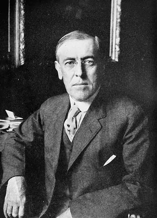The second administration of President Wilson was one of the most momentous in American history. In February, 1917, the German ambassador to the United States was given his passports; and in April the United States entered the war. The President who in a remarkable series of state papers had made the issues of the war clear had behind him a united people; and the American army and navy were decisive factors in securing the final military triumph of the Allied and Associated Powers. During the peace negotiations, which followed the signing of the armistice on Nov. 11, 1918, Wilson broke one of the traditions of the Presidential office by himself going to Paris as head of the American peace delegation. He took a very prominent part in the making of the treaty of Versailles, particulary in the section of the treaty dealing with the League of Nations. The treaty, however, met with bitter opposition in the Senate and failed of the two-thirds vote necessary for ratification. Consequently the treaty became one of the leading issues in the presidential campaign of 1920, as the Democrats under the leadership of Governor Cox, of Ohio, indorsed Wilson's position, while the Republicans led by Senator Harding, of Ohio, approved the stand of the Senate in refusing to ratify without certain reservations. In September, 1919, while on a tour of the country to win popular support for the League of Nations, Wilson had a serious physical breakdown. Mr. Wilson took no active part in the election of 1920, although he cordially supported Gov. Cox. Following the inauguration of Senator Harding, he retired to private life in Washington. He formed a partnership with Bainbridge Colby, former Secretary of State, for the practice of international law.