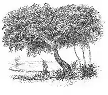 The Investigator's old well was discovered half a mile eastward of the point, to which I gave the name of Point Inscription, from a very interesting discovery we made of the name of Flinders' ship cut on a tree near the well, and still perfectly legible, although nearly forty years old, as the reader will perceive from the woodcut annexed. On the opposite side of the trunk the Beagle's name and the date of our visit were cut.