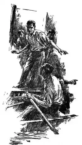 "Hyuh we be!" a man yelled, and the boys ran their launch down to him, his wife, and his three children,—two girls and a boy.