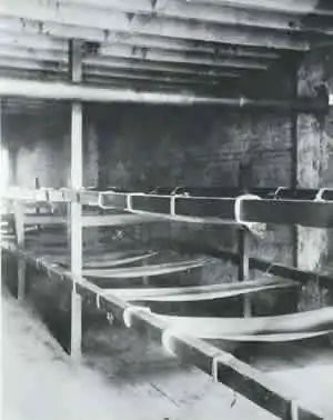 There are no licensed lodging-houses known to me which charge less than seven cents for even such a bed as this canvas strip, though there are unlicensed ones enough where one may sleep on the floor for five cents a spot, or squat in a sheltered hallway for three. The police station lodging-house, where the soft side of a plank is the regulation couch, is next in order. The manner in which this police bed is "made up" is interesting in its simplicity. The loose planks that make th e platform are simply turned over, and the job is done, with an occasional coat of whitewash thrown in to sweeten things. I know of only one easier way, but, so far as I am informed, it has never been introduced in this country. It used to be practised, i f report spoke truly, in certain old-country towns. The "bed" was represented by clothes-lines stretched across the room upon which the sleepers hung by the arm-pits for a penny a night. In the morning the boss woke them up by simply untying the line at o ne end and letting it go with its load; a labor-saving device certainly, and highly successful in attaining the desired end.