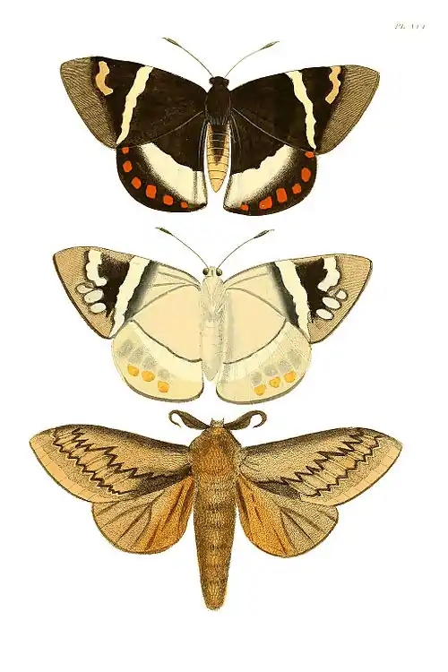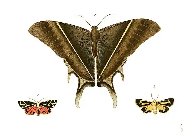The acknowledged value of the figures contained in Drury's "Illustrations,"[1] the extreme rarity of many of the insects figured therein, which continue up to the present day to be unique, and the scarcity of the work itself, which appears almost unknown to Continental Entomologists, having induced the proprietor of the plates to republish the work, I have consented to undertake the charge of bringing it forth in a form more adapted to the present greatly advanced state of Entomology. How far I have succeeded must be left for the candid Entomologist to decide. It is fit however that, by way of bespeaking indulgence for the numerous errors into which I fear that I have, notwithstanding all my care, fallen, I should mention the obstacles which have operated against my giving the work that perfect style which I could have wished it to possess. Of these the chief difficulty has arisen from the non-possession of the specimens which served for the original illustrations, without which it may be readily conceived that it has been impossible to ascertain with precision many of the more minute characters, of which the present state of the science requires the investigation; thus in many cases I have been obliged to remain in ignorance of the particular structure of the antennæ, trophi and legs, and the disposition of the veins of the wings, in many of the smaller species of Lepidoptera, so that the precise genera may not in some instances be correctly stated; and to many I have been compelled to attach marks of interrogation for the like reason. Another and equally strong obstacle has been produced from the little attention paid to exotic Lepidoptera by modern Entomologists. More than two-thirds of these Illustrations are illustrative of that beautiful order of insects; and yet, with the exception of some of the showy butterflies and moths, scarcely a reference is to be found even in the works of Fabricius, the personal friend of Drury, whose Entomologia Systematica, published in 1793 and 1794, contains the last general summary of the species of this order; Gmelin also, whose Systema Naturæ it has been the fashion to decry, but which, as a laborious compilation from the works of preceding and chiefly Continental authors, is of great service,[2] was only acquainted with these illustrations through the early works of Fabricius.[3] It is true that M. M. Boisduval and Guérin have respectively published various new exotic Lepidoptera, especially of the Nocturnal group, in the Voyages of the Coquille and Astrolabe; but we still want a general revision, not only of the species but of the genera of this order. It was to have been hoped that, as regarded the Javanese species, this would have been effected by Dr. Horsfield, whose work upon the Lepidoptera of Java, as far as published, leaves nothing to be desired of the structural details of the species illustrated therein. M. Boisduval also, in his Histoire Naturelle des Lépidoptères, has treated the subject in a masterly manner, availing himself both of the preparatory states and veining of the wings; but we greatly miss those beautiful details which render the works of Horsfield and Curtis invaluable. It is in this comparative ignorance, both of the structural and metamorphotic details of exotic Lepidoptera, that we may attribute the want of a sound and philosophical distribution of the order in question; and which at the same time prevents us from determining the situation of many remarkable and anomalous groups. Of these the genera Castnia, Urania, &c. and the whole tribe of the Zygænidæ may especially be mentioned; and it is with the view of inciting enquiry into this part of the subject, that I have introduced many of the latter species into the genus Callimorpha amongst the Nocturnal moths.