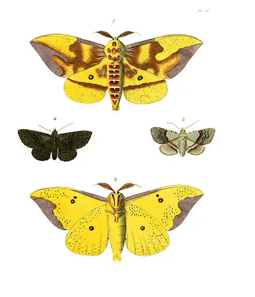 - ↑ This is evident from Gmelin's occasionally copying some of Fabricius' erroneous references, e.g. Bombyx ornatrix, Gmel. p. 2444. with a reference to Drury, v. I. t. 74. as in Fabr. Syst. Ent. p. 586. instead of tab. 24.