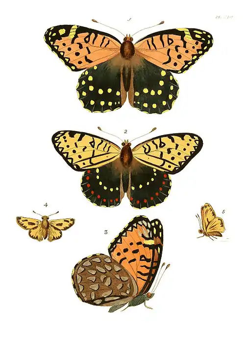 "All the descriptions are taken from the insects themselves; whatever defects, therefore, are to be observed in comparing them with the coloured figures must be imputed to the artist, as it would not be proper to describe them according to the prints, but to nature."—It is in consequence of this last remark that I have been careful to omit nothing of the original edition in this edition of the least importance, but have given the description as much as possible in the words of the author himself.