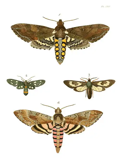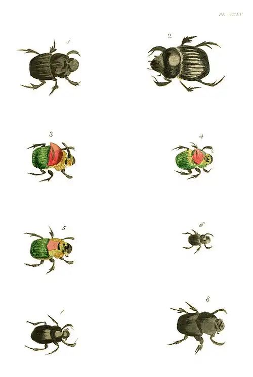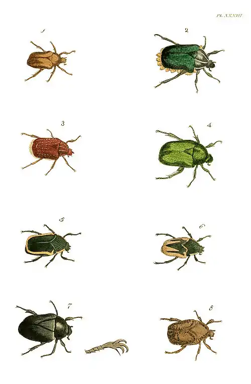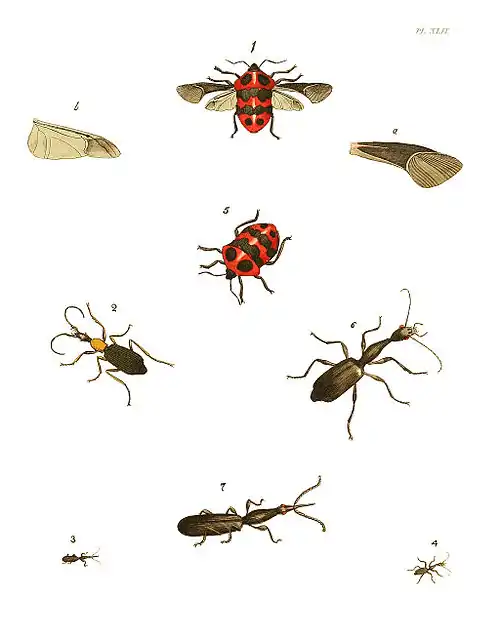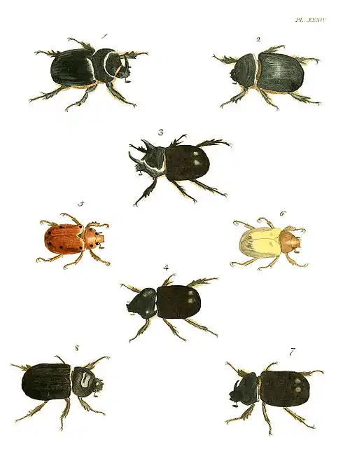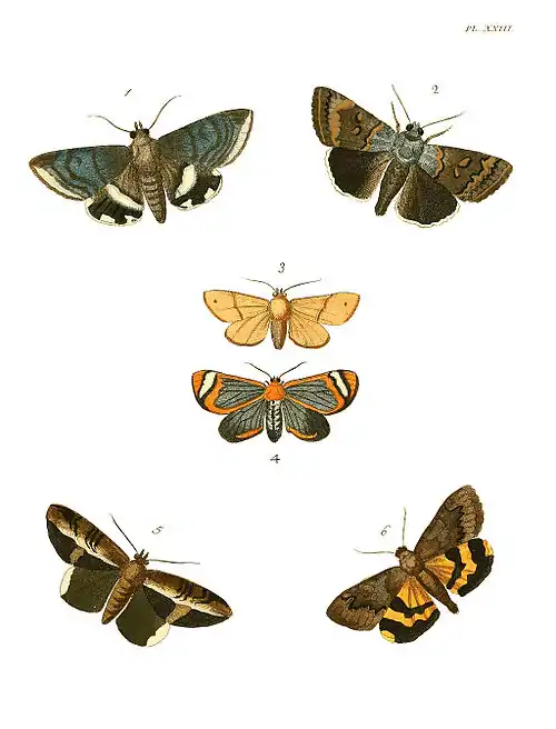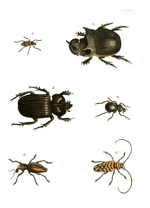- ↑ The primary division of the class Insecta, now adopted, is into orders, Lepidoptera (called farinaceous by Drury), Coleoptera (called crustaceous by Drury), &c.