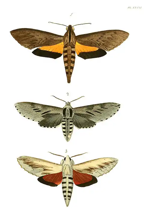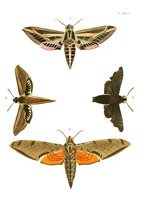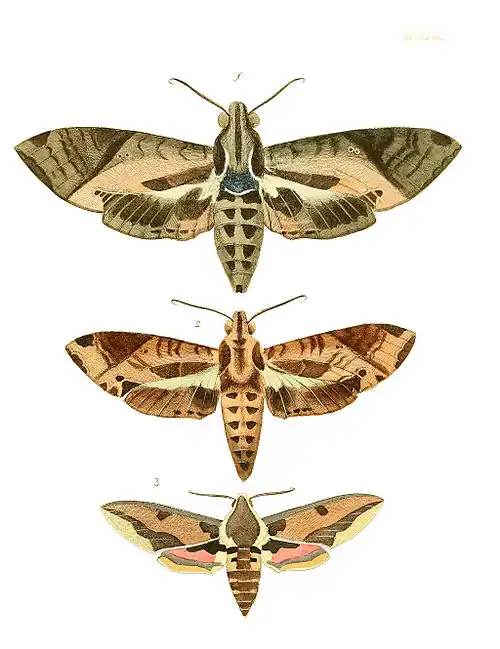 - ↑ From the peculiar power of contraction and elongation possessed by these segments, and which is found in the caterpillars of other species of Deilephila, these insects have obtained the name of Elephant-hawk Moths.
