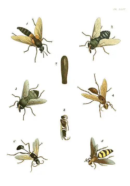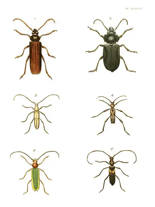 - ↑ In consequence of the great increase of the science it has been found necessary to divide the Orders of Insects into Sections, Families, Subfamilies, &c. before arriving at Genera, which are now much more limited than in the time of Linnæus.