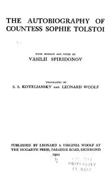 The Autobiography of Countess Sophie Andreevna Tolstoi
