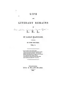 Life and Literary Remains of L. E. L.